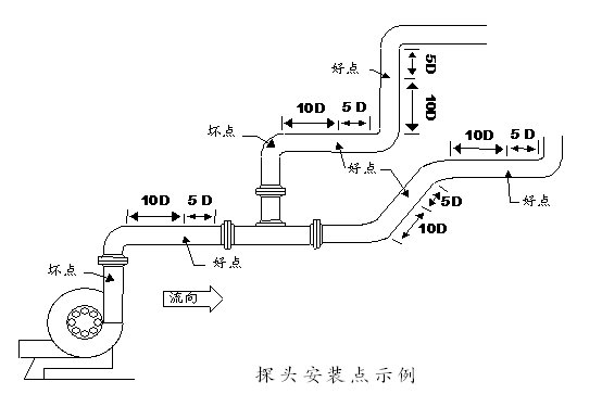 选择测量点时要求选择流体流畅分布均匀的部分,为保证测量精度。一般应遵循下列原则: